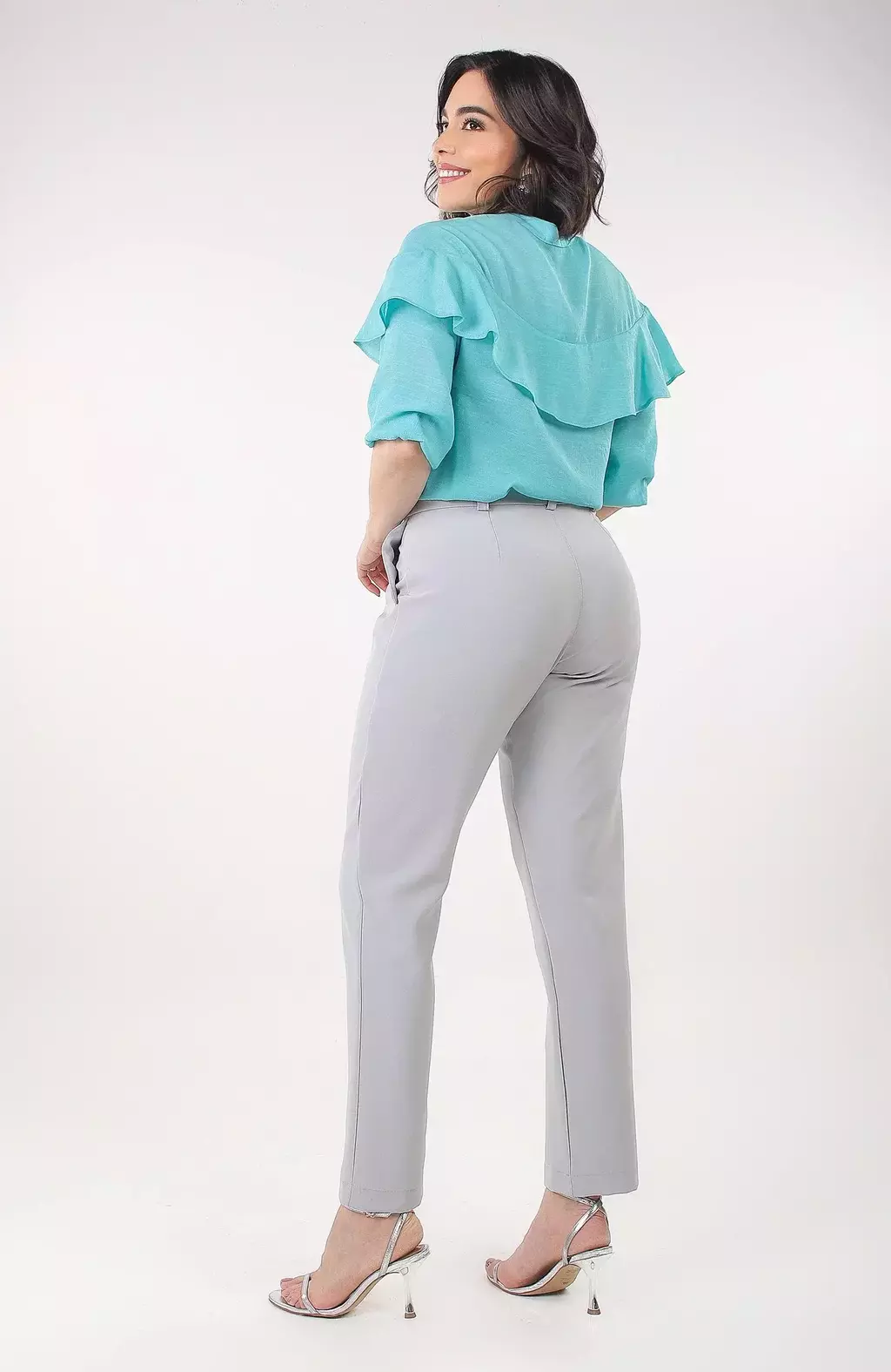 Disponível nos tamanhos P, M, G e GG, ela garante um caimento perfeito, valorizando suas curvas com um design sofisticado. O detalhe do babado adiciona um charme especial à peça, tornando-a versátil para compor looks desde os mais casuais até os mais formais.