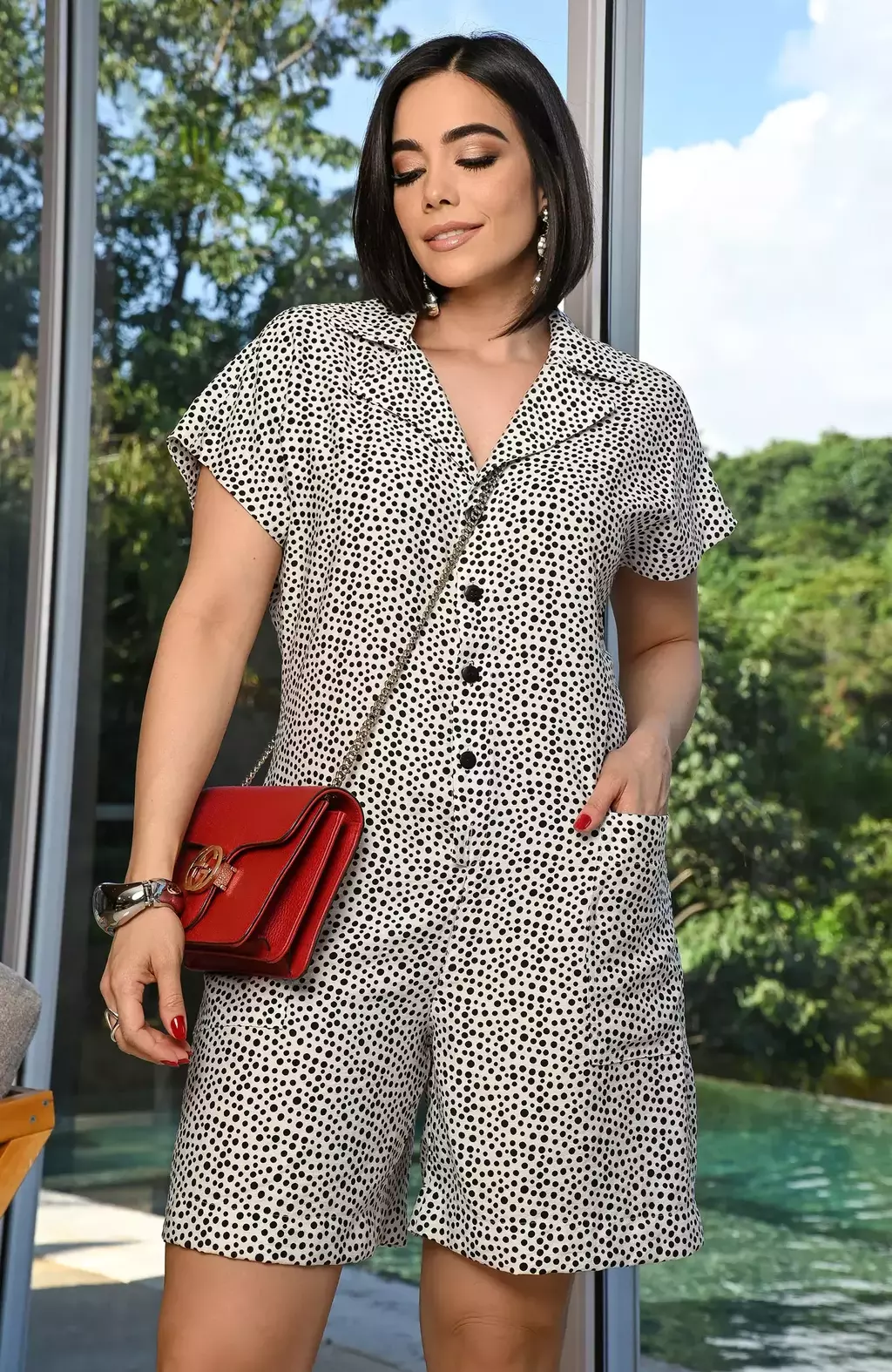 Adicione um toque de elegância e descontração ao seu guarda-roupa com o Macacão Viscose Poá Preto e Branco da Free Option — a peça essencial para mulheres que buscam estilo sem abrir mão do conforto.