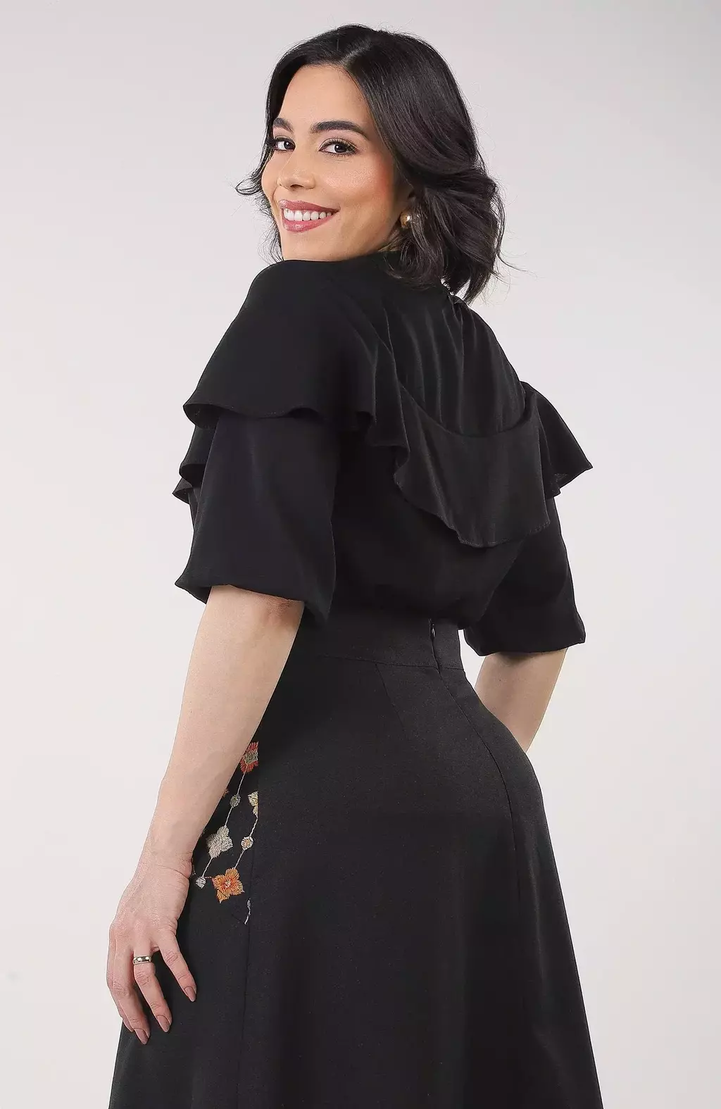 Renove seu visual com a Saia Linho Bordado - Preto e sinta o diferencial de uma peça feita para destacar sua personalidade com muito conforto e estilo.