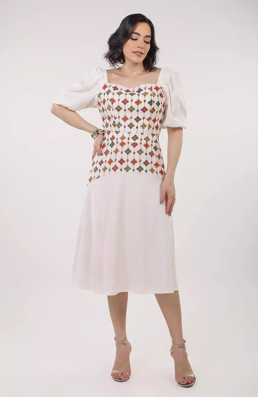 Disponível nos tamanhos P (38), M (40) e G (42), ele se adapta perfeitamente ao seu corpo, garantindo um caimento elegante e confortável. O design bordado confere um toque especial, tornando-o versátil para looks do dia a dia ou eventos mais sofisticados.