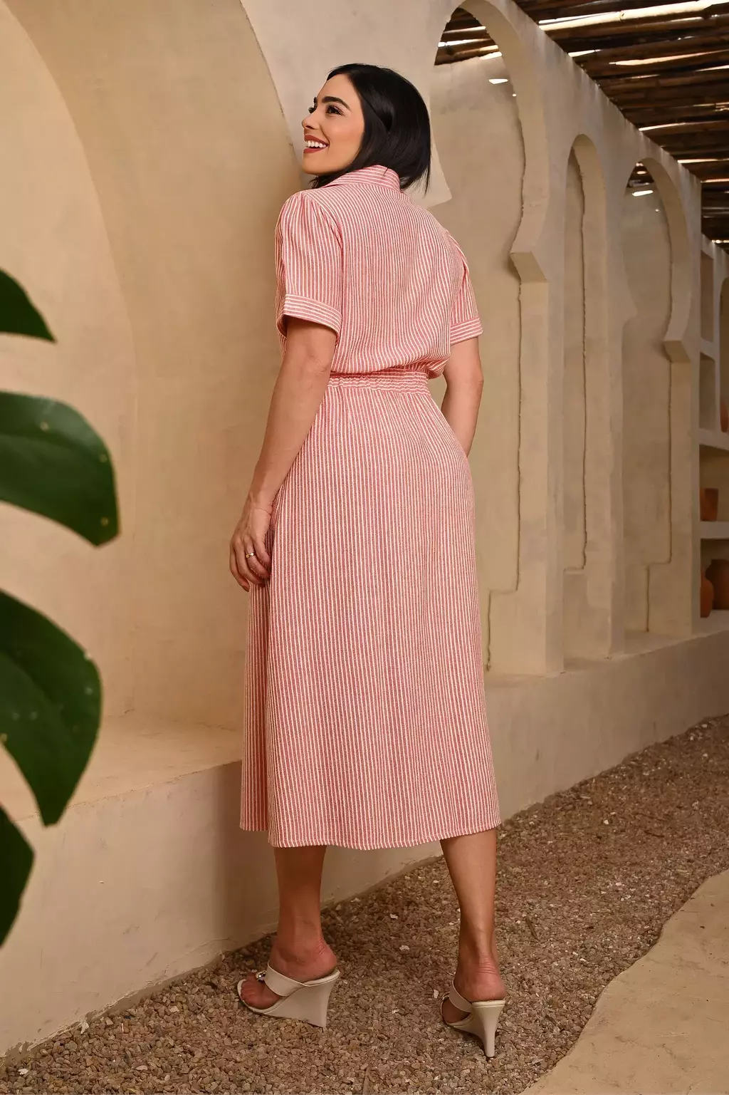 Encante-se com o Vestido Chemisier com Renda em vermelho, uma peça que une elegância e conforto para o seu dia a dia. Confeccionado em 75% viscose e 25% algodão, oferece toque suave e respirabilidade.