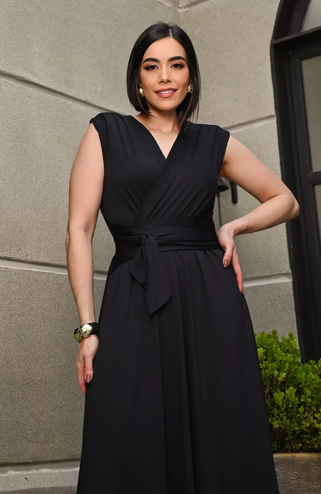 O Vestido Fluity Liso é a escolha perfeita para quem busca um look sofisticado e moderno. Confeccionado em tecido fluity com composição de 92% poliéster e 8% elastano, oferece conforto e caimento impecável. Destaque para o decote trespassado, ombreiras estruturadas e a faixa fixa para amarração na cintura, que valoriza a silhueta.